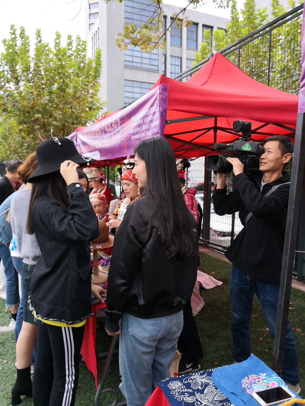 这是第一次在校园内举办如此众多的留学生参与的非遗作品展出活动。授课老师傅婷说,传承人学员一边展示一边绣制,这样的授课形式以前还没有举办过,对国际友人开展这样的活动,对于宣传中华优秀传统文化无疑具有巨大的意义。而聚焦于工艺本身,傅婷老师更认为这是一个相互学习的过程:作为中国纺织设计与服装专业强校,提供给民族手工艺者更先进的设计理念;而非遗班学员也通过自己的技艺,展示出了独特的民族文化魅力。