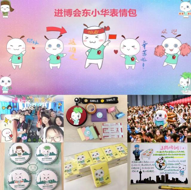 进博会志愿者工作组还设计制作了“蚕宝宝”系列文化产品,融合了进博会元素“四叶草”以及志愿者文化元素“雷锋”、“超人”等。文化产品的激励徽章一套共有四个,传承了高校间志愿者徽章交换、相互激励的文化特色;专属纸巾将于每日清晨随爱心早餐包一同发放给志愿者。在志愿者休息室和班车内将摆放“VOVO陪伴布偶”,让志愿者感受到组织的陪伴,从精神上缓解志愿者的工作压力。