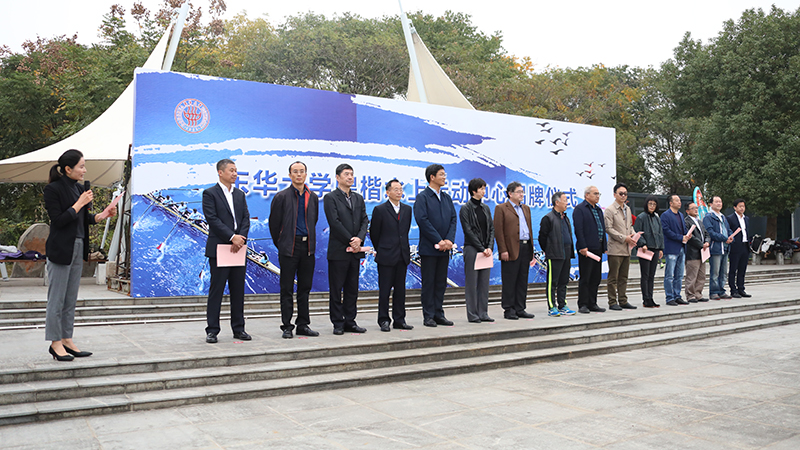 揭牌仪式上,刘勇代表捐赠企业致辞,他表示,水上运动中心是国内高校第一个由校企合作成立的水上运动中心,开创了校企合作办体育的新模式,筹备和建设工作得到校领导及各相关部门的重视和支持,“中心”的成立将丰富并完善运动项目的构架,为全体师生提供优质的服务。体育部主任朱江华代表学校接受捐赠,发展联络处处长、校基金会秘书长瞿斌向企业代表颁发捐赠证书,8位校内外嘉宾代表为龙舟点睛。