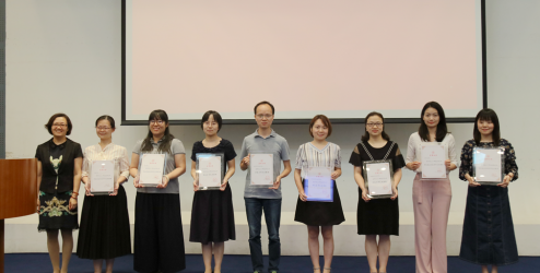 (党委副书记刘淑慧(左一)为获奖代表颁奖)