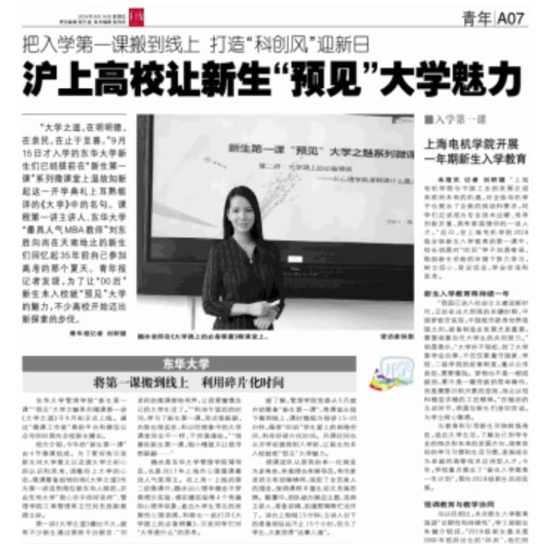 将课堂从线下搬到线上,课时缩短为每讲15到20分钟,管理学院党委将“新生第一课”的开课时间也从开学初提前到入学 前,让新生足不入校就能“预见”大学魅力。