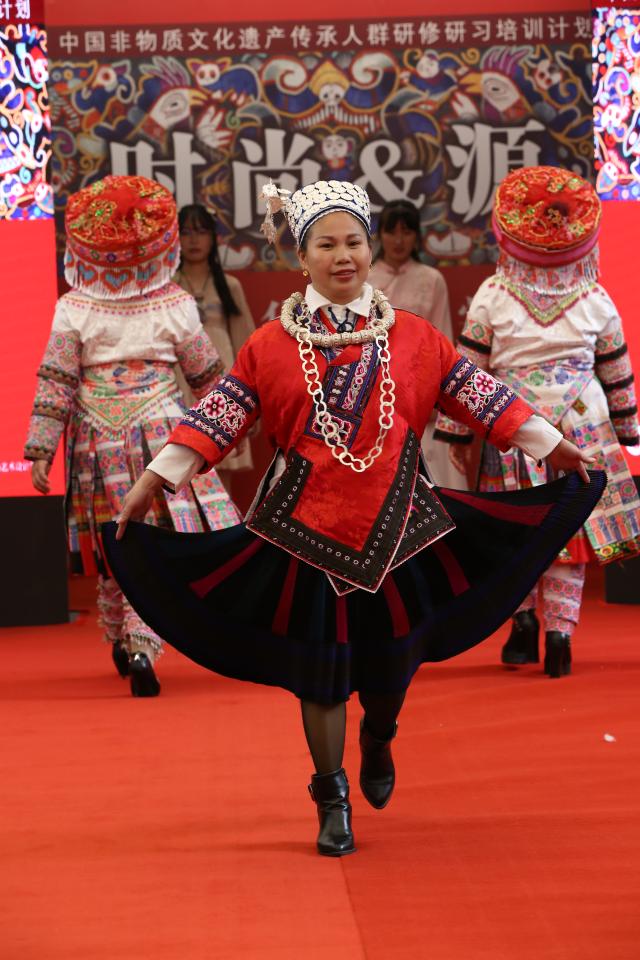 “时尚与源”相互哺育正是非遗研培成果的一大特色。民间智慧与高校学术的互相滋养,传统工艺与现代创意的交汇融合,非遗传承人与年轻学子联手打造的服饰新品,让古老的非物质文化遗产以新的风姿再现生机。我校第五期《传统刺绣创意设计》研修班成果汇报展演至此圆满落幕,本次研修班对如何传承和创新非遗传统技艺进行了深入的思考,并且将中国的时尚观点和设计思想充分融入非遗创新设计,以现代设计手法来诠释民族文化。非遗研培工作对学校艺术学科发展和艺术人才培养同样有巨大促进作用,我校未来将以“研”带“培”,充分发挥学校科研优势引领作用,深入调研项目发展现状和传承人群现实需求,建立更系统的学术支撑体系,扎实做好研培各项工作。