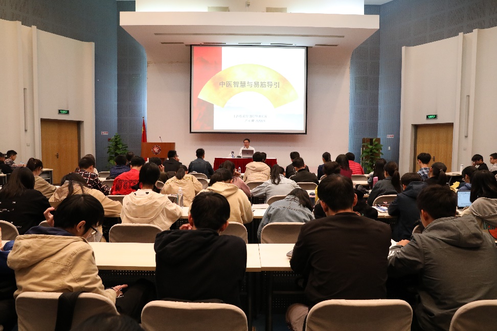 讲座中,严石卿从以中医养生与人类健康与长寿的话题切入,用世界卫生组织对于“健康”影响因素的权威调研数据证实:能否维持符合自然的生活方式,才是能否健康的重要因素。既从文献的角度回顾了“易筋经”的悠久历史,也详细解读了“易筋经”的学理内涵。他援引《黄帝内经·上古真论篇》中“法于阴阳,和于术数,食饮有节,起居有常,不妄作劳”,引导学生在日常生活中也要学会吸收中华优秀传统文化的精髓,“懂得跟随身体的意愿,懂得如何与身体对话”。他结合葛洪《抱朴子》中的论述阐述了“导引”的概念以及《中医导引学》的由来。