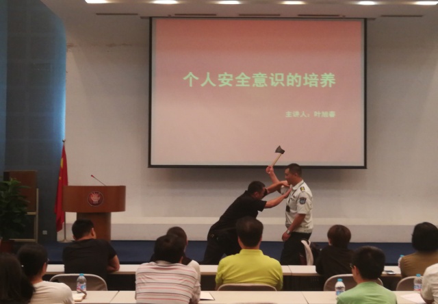 5月16日,保卫处邀请到原武警特战队员、射击教官叶旭春给保卫处工作人员、机关党委青年干部、全校二级单位安全员等做了 “个人安全意识的培养”讲座。叶教官曾经是武警特战大队作战队员,参与过多位国家元首和领导人的安保工作,曾任特警学校射击教官,退休后从事个人安防培训工作,具有丰富的个人安防经验。他分析大量的案例,并通过各种道具、现场示范动作,给大家上了一堂生动的、实用的加强个人安全意识和提高个人防护技能的安全课。两个小时的讲座,所有人听得专心致志,最后还意犹未尽,直呼过瘾。