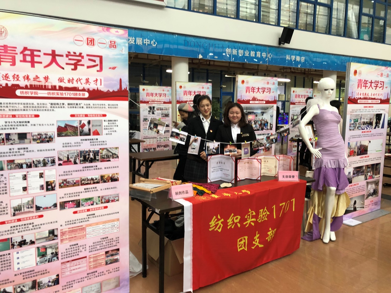 应用化学1602团支部书记余潇潇介绍说:“在青年大学习的号召下,支部成员一起设计了吉祥物‘苯宝宝’,正如化学物质中苯环稳定地联结着各基团。‘苯宝宝’带动支部成员融入‘红色文化’的化学反应,在校级星级团日活动评比和‘一团一品’创建中凝练特色、收获佳绩,不断提升了团支部凝聚力。”在红旗团支部的创建过程中,应用化学1602团支部以“做好榜样模范,厚植青春力量”为品牌,依托强化思想引领,积极参与团中央“习语金句,百校千言”活动,学习“团十八大精神”,与广富林街道团工委、河道天使志愿者服务队“双报到”、“双结对”。环境学院建筑1601团支部扎实推进“一团一品”建设,支部建档完整,智慧团建完成率达100%,结合专业特色开展“弘扬绿色环境之风实践湿地保护之行”暑期实践、环保科技日等实践教育活动。
