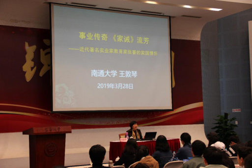 3月28日,南通大学文学院原党委书记、教授、历史学博士、张謇研究所原所长王敦琴教授来到《锦绣中国》课堂,主讲“事业传奇 《家诫》流芳——近代著名实业家教育家张謇的家国情怀”,带领同学们一起了解张謇,感受这位实业家教育家的家国情怀。