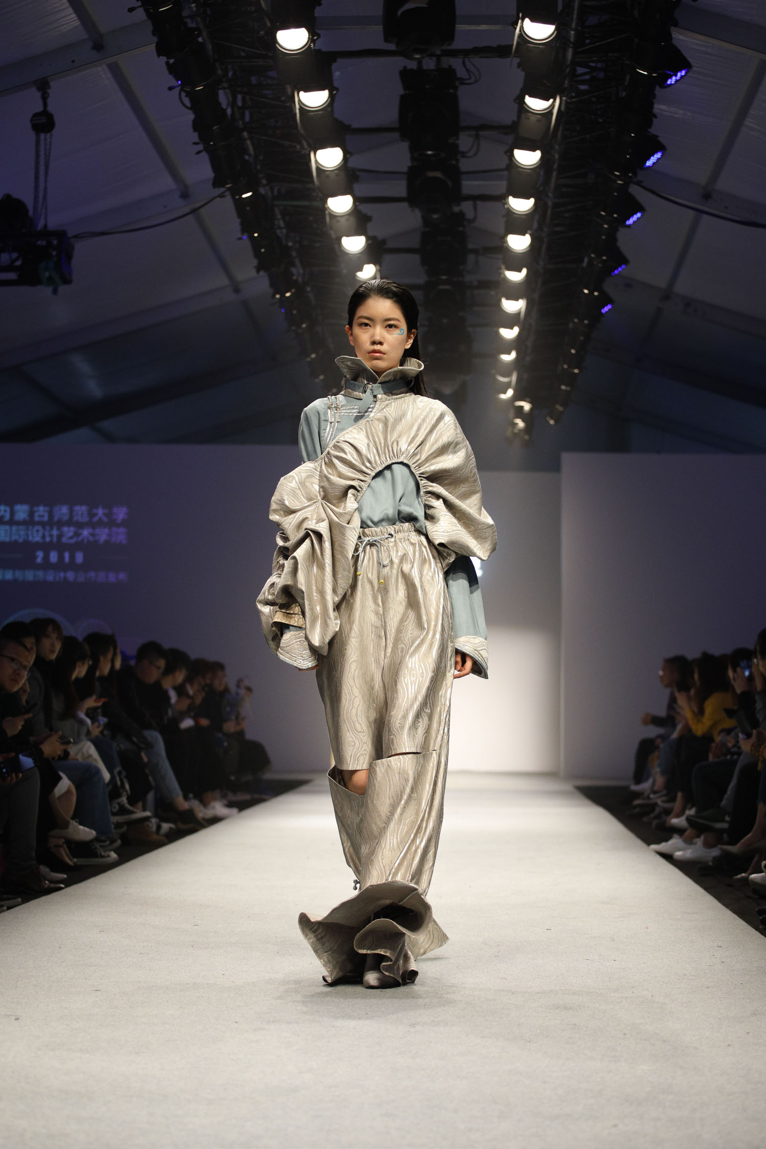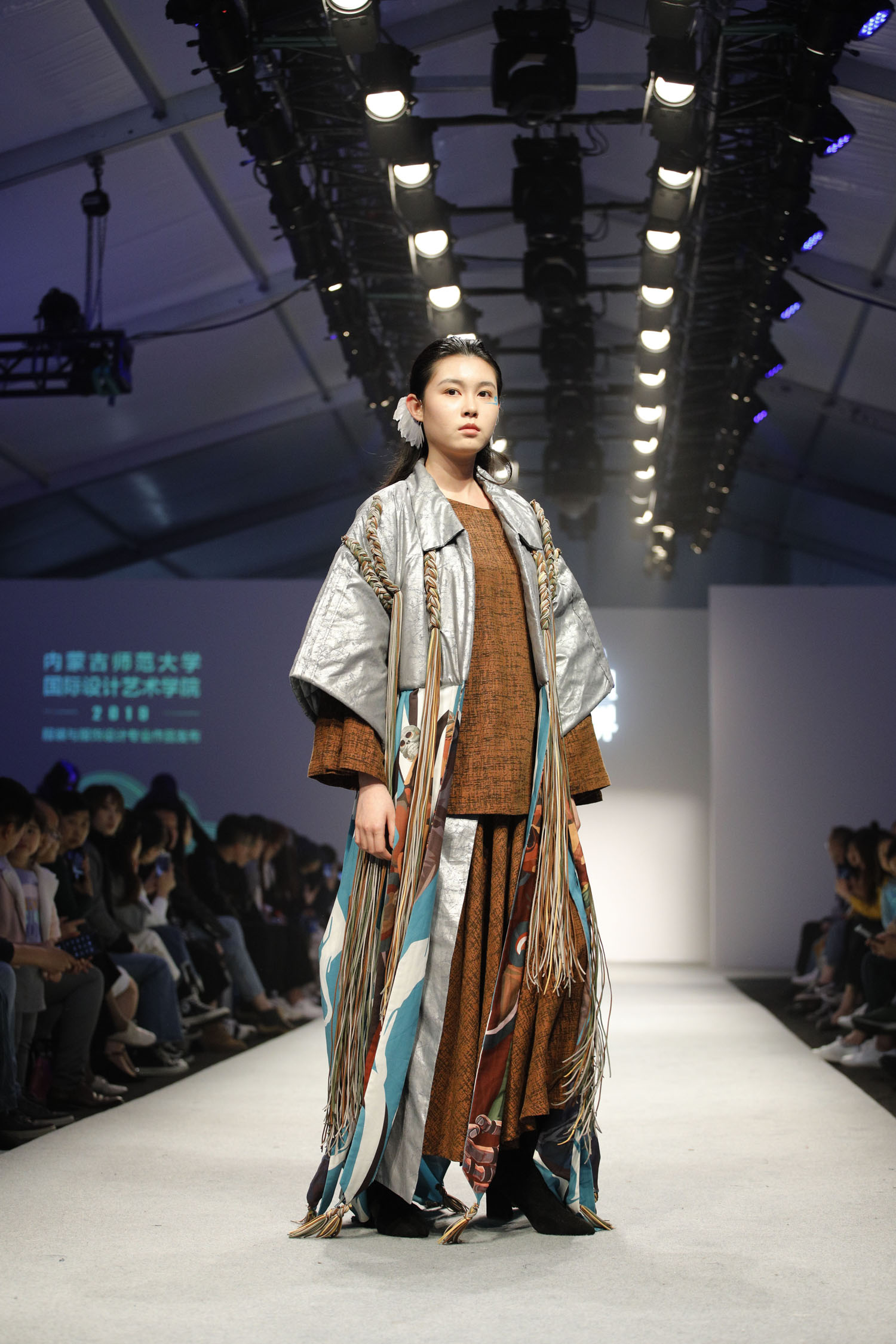 本届服饰作品秀各学校分主题展演,尽显民族特色。其中,西藏大学展出的西藏传统服饰、服装与服饰设计专业2019届毕业生设计作品,将时尚理念融于藏民族传统文化的艺术表达。内蒙古师范大学的60套“现代蒙古族服饰系列”传递了年轻设计师们对民族文化、现代创意与实用哲学的表达。内蒙古艺术学院带来的56套作品具有内蒙古地区鲜明的民族与地域特色,其中既有本届毕业生的优秀设计,也有选自学校重大重点创作展演“元代宫廷服饰艺术再现”项目的教师作品,展现了该校师生在致力于民族服饰艺术传承与创新方面的所做的努力与探索。