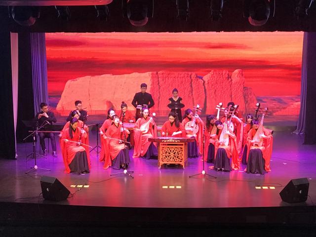 据悉,我校学生艺术团民乐团成立于2004年,现为上海学生民乐联盟单位之一。由民乐队、古筝队及打击乐队三支团体组建而成。其团员来自学校各学院非音乐专业的在校大学生。多年来,民乐团创立了“琴筝雅裳文化传习基地”、“琴筝雅裳”系列活动特色品牌;举行校园民族音乐和传统文化讲座,创作并演出了“琴筝雅裳·如梦令”、“琴筝雅裳·寻梦追根”等多台高水准的多媒体民乐专场晚会。2017年,民乐团作为国家汉办派出团,远赴非洲肯尼亚参加全球孔院日文化巡演。曾荣获第二届全国鼓艺大赛金奖,并在第五届全国大学生艺术展演中斩获多个奖项,2018年民乐团获得上海市“五四青年奖章标兵集体”光荣称号。