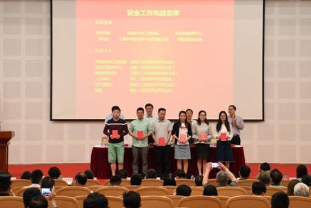 会议表彰了2018年度学校安全文明单位和安全工作先进个人,纺织学院、环境科学与工程学院、先进低维材料中心、学生处、上海东华镜月资产经营有限公司、后勤集团饮食部等6个集体获评“2018年度安全文明单位”称号,余阳、刘蕾、王晓丹、罗红、桑惠兰、徐锋等6位教职工获评“2018年度安全先进个人同时获评优秀安全员”,王新厚、徐志德、张灯青、李征等40位师生获评“2018年度安全工作先进个人”。环境科学与工程学院安全工作负责人、安全先进个人教工、学生代表分别作工作交流发言。