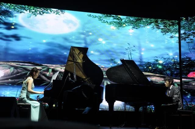 一曲民乐合奏《上海往事》拉开整场晚会序幕,琵琶、钢琴《云想·花想》感受李白的清平调,古筝演绎爵士风格的《蓝》让观众耳目一新。钢琴、竹笛、古筝《渔舟唱晚》,感受“落霞与孤鹜齐飞,秋水共长天一色”的静远之美。双钢琴版《梁祝》,让爱情的歌唱久久萦绕。古筝、钢琴《乡韵》展现了“八百里秦川”的缠绵与豪迈,留下游子浓浓的思乡之情。熟悉的《春·夏·卡农》展现了异国独有的风情。打击乐、双钢琴与古筝联袂演绎《黄河》,展现了华夏儿女共创未来的雄心壮志。