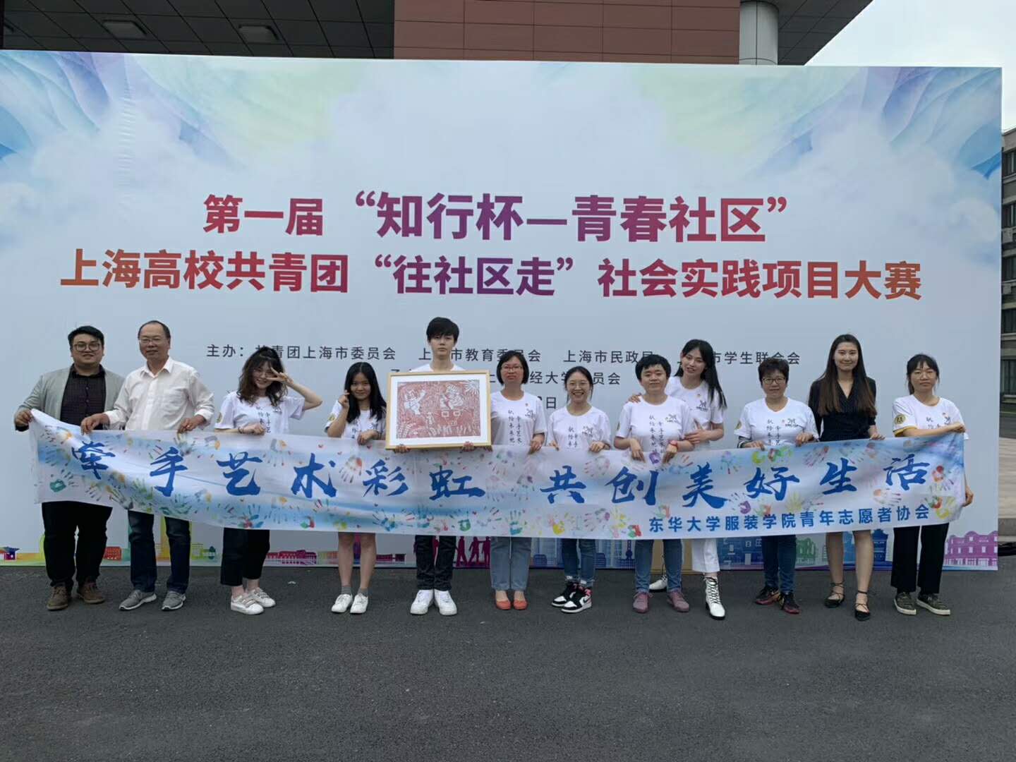 5月18日,由共青团上海市委员会、上海市教育委员会、上海市民政局、上海市学生联合会主办,共青团上海财经大学委员会承办的2019年第一届“知行杯—青春社区”上海高校共青团“往社区走”社会实践项目大赛决赛在上海财经大学举行。我校服装与艺术设计学院助残扶困项目“牵手艺术彩虹,共创美好生活”在决赛中荣膺十大示范项目。
