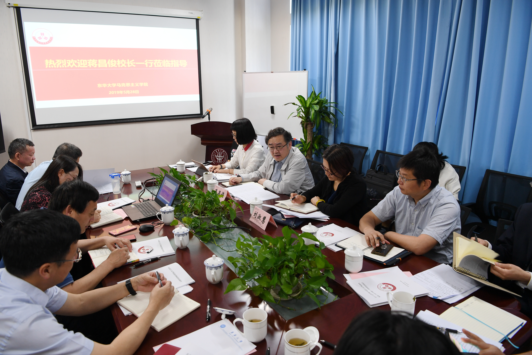 5月28日上午,为落实《普通高等学校马克思主义学院建设标准(2019年版)》,进一步推进马克思主义学院高质量发展,校长、党委副书记蒋昌俊带队在马克思主义学院召开现场会,听取学院建设推进情况报告,研究解决学院在发展中面临的具体问题。党委副书记刘淑慧出席会议。