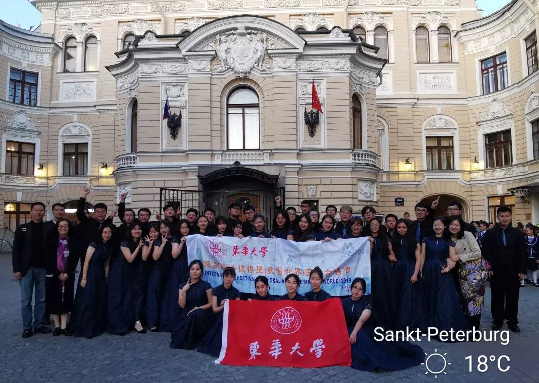俄罗斯圣彼得堡“歌唱世界”国际合唱节(SINGING WORLD INTERNATIONAL CHORAL FESTIVAL)在国际合唱界中极具影响力,旨在提供一个富竞技性、盛事性及教育性的高水平合唱比赛,为世界各地的专家和精英合唱团建立一个艺术交流平台,举办地俄罗斯圣彼得堡有“东欧音乐之都”的美誉。该合唱节自成立以来每届均有数十多支来自世界各地的合唱团队参赛,今年第十七届更是吸引了来自荷兰、澳大利亚、拉脱维亚、法国、德国、意大利、加拿大等国的五十余支队伍参与其中,而报名参与民歌组和现代组两个组别的合唱团DHU Singers则是参赛队伍中唯一一个中国大学生合唱团队。