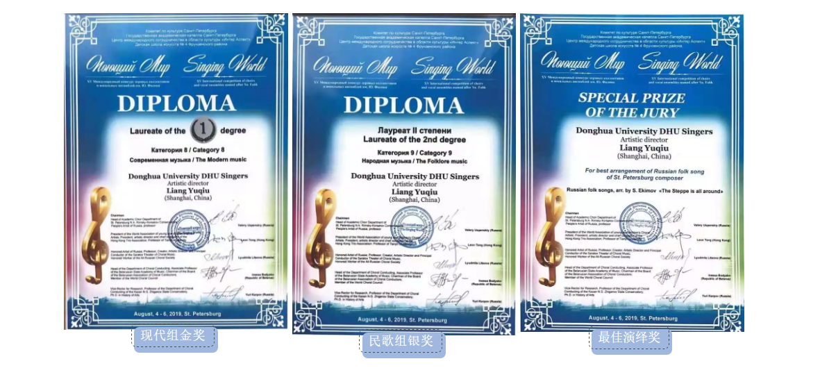 近日,第十七届“歌唱世界”国际合唱节在俄罗斯落下帷幕,合唱团(DHU Singers)以精彩的表现再次唱响国际,在比赛中荣获现代音乐组金奖、民歌组银奖、俄罗斯作品最佳演绎奖三项大奖。