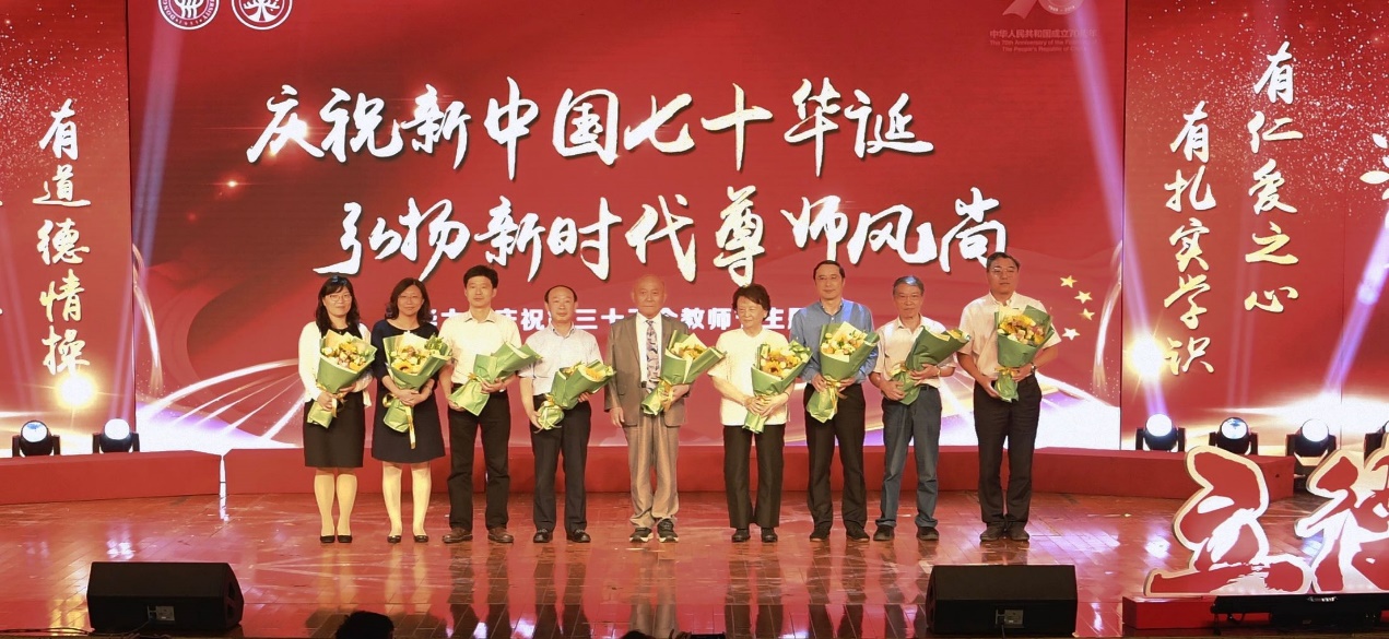 9月6日,在第35个教师节即将到来之际,我校举行主题为“庆祝新中国七十华诞,弘扬新时代尊师风尚”的教师节庆祝活动,党委书记刘承功,校长、党委副书记俞建勇,党委副书记刘淑慧、崔运花,副校长邱高、卿凤翎、陈南梁出席活动,并为教职工获奖代表颁奖。学校老领导、老教师、老同志代表、全校师生代表参加活动。