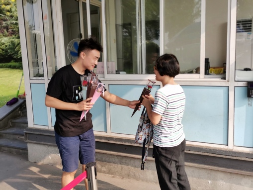 从今年3月起,校团委、校学生会启动“我心目中的好老师”评选活动,最终产生了15名优秀老师,以线上评选的活动形式为老师们送上节日最美的祝福,同学们纷纷留言“您是我人生的灯塔,谢谢您伴我成长”“遇见您是我的小幸运”等来感谢恩师的无私奉献。教师节当天一早,校学生会的学生代表们便早早等候在两校区门口为老师们献花致谢,一声声“教师节快乐!”“老师,您辛苦了!”“老师,您是我们心中最可爱的人!”道出了同学们的心声,表达了对恩师的浓浓敬意。各二级学院学生组织也纷纷组织形式多样的教师节祝福活动,一束束小花、一张张卡片,在这个特殊的日子里郑重地道一声:“老师好!”
