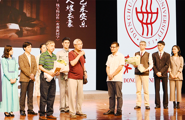 服装与艺术设计学院表演系教师、2015版《钱宝钧》大师剧中年钱宝钧饰演者姚积汶担任此剧导演,暑假期间姚老师带着参演学生克服个人困难全身心投入排演工作,顶着酷暑打磨每一场戏,精益求精深挖人物内心。他说,“老一辈科学家、教育家那份科学报国、无私育人的精神永远不会过时,前辈泽被天下的情怀,使后人更深刻感悟到为师之道,由新东华人来演绎老东华人的故事,无疑是对大师精神最鲜活的传承!”