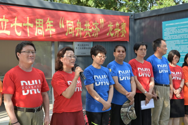 为庆祝中华人民共和国成立70周年,支持民主党派无党派人士开展“不忘合作初心,继续携手前进”主题教育活动,9月17日,由党委统战部主办,民盟委员会、少数民族联合会承办的“同心•同行”——统一战线庆祝新中国成立70周年“同舟共济”龙舟赛在松江校区水上活动中心举行。党委副书记崔运花出席开幕式,党委统战部、体育部及各民主党派统战团体负责人、党派团体成员和统战干部等100余名教师参加活动。