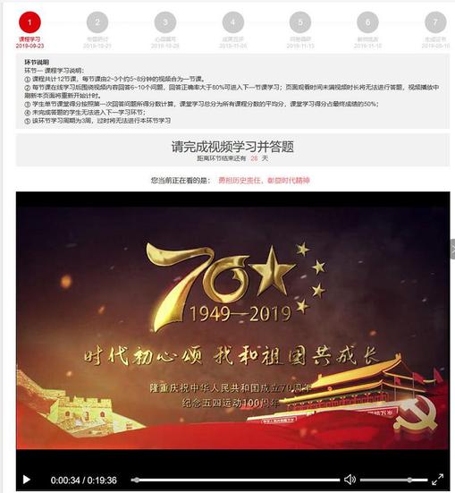 主题教育活动紧扣“我和我的祖国”主题,创新理论学习的多渠道和形式,激发青年学子自觉、自发学习的热情。易班平台打造“新时代·学习在线”系列微课,课程重点围绕习近平新时代中国特色社会主义思想和新中国成立70周年以来国家发展变化,选拔学生骨干担任微课讲师,从学生视角讲述国家的发展,诠释新时代精神。生动讲解激发了学生学习积极性和趣味性,在网络上掀起了学习的热潮。