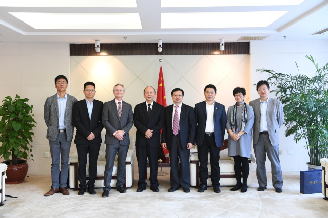 10月16日,美国北卡罗莱纳州立大学(North Carolina State University,NCSU)高级副教务长李百炼(Bailian Li)教授、“威尔逊”纺织学院院长大卫·亨克斯(David Hinks)教授等一行来校访问,副校长邱高会见来宾。国际合作处、研究生部、纺织学院、材料学院相关负责人陪同。