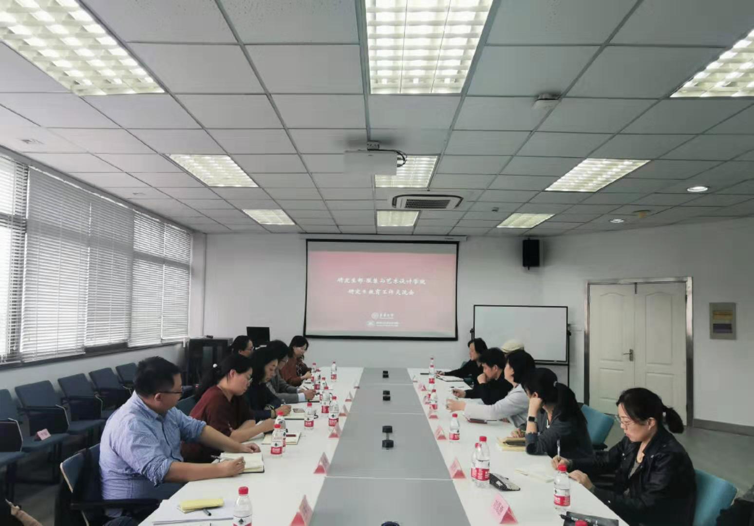 10月17日下午,研究生部主任俞昊与研究生部各部室负责老师赴服装与艺术设计学院开展研究生教育工作交流。院党委书记吴晶,院长李俊,副院长冯信群、李敏及各系部教师代表参加了交流会,李敏主持交流会。