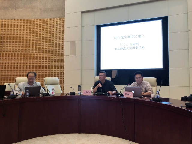 19日下午的两场学术报告分别由杨彬教授与涂鸣华副教授主持。华东师范大学黄阿明副教授在其报告中,对明代散阶制度的形成进行了解读,提出散阶制度是以品为核心本位,支配阶、动、禄、职的新的职官制度体系。杨茜老师的报告从明代江南地区市镇发展情况出发,分析市镇的自我认知,提出市镇与其区域内权势大族的关系,是研究基层地域社会历史进程的重要方向。上海大学张呈忠老师的报告提出王志瑞《宋元经济史》反映了中国断代经济史研究兴起时期的学术特点,该书在宋元经济研究的学术史上具有极为重要的开拓意义。涂鸣华副教授的报告,回顾了中国新闻史书写的几个阶段及其范式演变,认为以往的中国新闻史研究存在自主性不足和弱化革命等问题,而新革命史视野会为新闻史研究提供新的思路。后一场报告的主题主要是东亚汉字文化圈的科技文化交流与传播,内蒙古师范大学郭世荣教授梳理了传教士传入的自鸣钟在朝鲜的传播历程,介绍几位朝鲜自鸣钟制造专家的工作及其对自鸣钟的考察与追求,阐述自鸣钟在朝鲜的文化意义。上海交通大学董煜宇副教授的报告考证、梳理宗藩体制下琉球历日的演变过程,阐释其与东亚政治格局变迁之间的密切联系。上海交通大学萨日娜教授的报告围绕日本江户时代测绘家伊能忠敬的工作,考察中国明清汉译西方科学著作和“兰学”著作对其测量工作的影响,分析了其所绘制的地图对日本测量学的重要历史意义。徐泽林教授的报告首先回顾了中国古代历法志的研究史和日本汉学发展史,随后介绍了中国历法对日本的影响以及被学术界忽视的丰富的江户时代汉历注解文献,通过具体案例说明江户时代汉历注释文献的重要学术价值,认为日本江户时代对中国传统历法的解读更接近中国传统数理天文学的本意,是值得深入研究的学术领域。