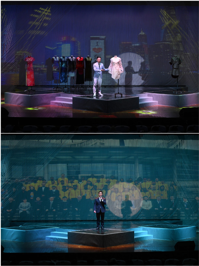“如果请各位选择一套服装来代表上海,你会选什么?”这是上海环东华时尚创意中心主任韩哲宇的随堂提问。作为国庆70周年上海彩车服装设计和演出的项目负责人,韩哲宇现场展示了包括“花仙子”海派旗袍等在内的8套服装,尽显科技与时尚融合之美。在他看来,从让国人“穿得暖”到“穿得美”再到“穿得智能”,服装早已不只是为了满足蔽体保暖,而是一种文化符号,体现了一个国家或地区的政治、经济和文化水平。近年来,学校积极发挥学科优势,致力于通过时尚创意来展示传播中国文化,讲好中国故事。例如,把“五行”这一中国古代哲学思想融入旗袍设计,推出了“金木水火土”海派商务旗袍系列,透过东方视角探讨未来时尚。