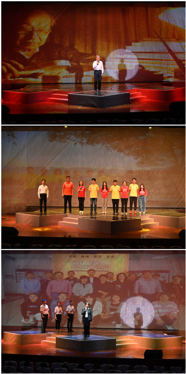 党课中的原创大师剧《钱宝钧》片段把大家的思绪带回到上世纪50年代建校初期。作为新中国第一所纺织高等学府,在近70年的办学历程中,留下了华纺人、纺大人、东华人的报国情怀和育人初心。