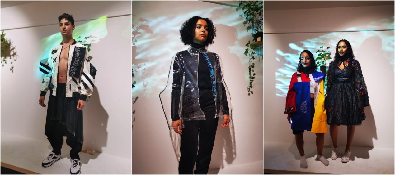 此次活动中展出的20套服装系中英双方服装设计专业学生结对共同创作。作品风格各异,既有传统刺绣等东方元素,体现了近年来我校对非遗传承人刺绣研修培训的成果,又穿插了前卫、嬉皮的西方元素,表现出东西方文化的交融。