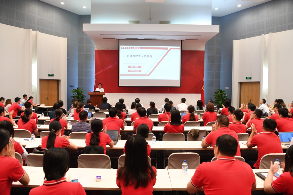 兴国必先强师,强校必先强师。传道者自己首先要明道、信道,年轻教师是学校教育质量不断提升的新动力,是教育事业可持续发展重要的依靠力量。学校打造以师德养成、内涵教育、文化浸润、实践涵育于一体的“崇德讲堂”师德建设品牌,通过“主题报告”“入职宣誓”“师德师风专题培训”“能力培养规范学习”“传承·奋进”等5大模块,为新教职工扣好从事教育教学工作的“第一粒扣子”。