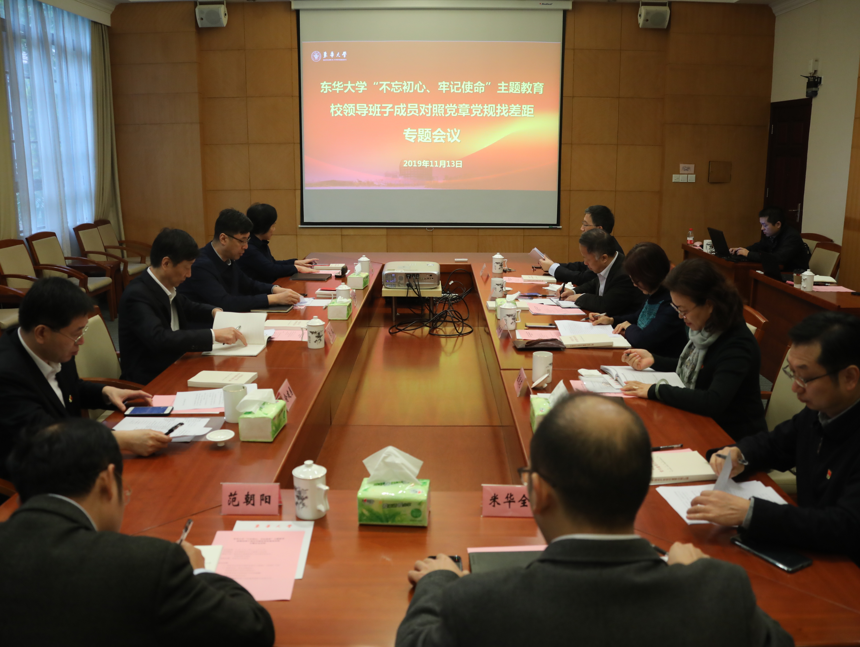 11月13日上午,我校召开“不忘初心、牢记使命”主题教育校领导班子成员对照党章党规找差距专题会议。会议由党委书记刘承功主持,教育部直属高校“不忘初心、牢记使命”主题教育第六巡回指导组组长朱拓,副组长、教育部党建工作联络员刘建中及指导组成员范朝阳、米华全列席。校领导俞建勇、刘淑慧、崔运花、金海燕、邱高、舒慧生参加专题会议。