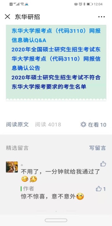 服务未来“东华人”的便捷信息化建设也在推进,记者从研究生部了解到,我校2020年考研报名信息开始实行网上确认的方式,借助互联网手段解决了以往现场确认时间紧、人数多,高峰时间考生大量排队,部分考生因出差、生病等情况不能在规定时间里到场确认等难题,极大方便了选择报考点的3000多名考生,赢得了考生的一致点赞。