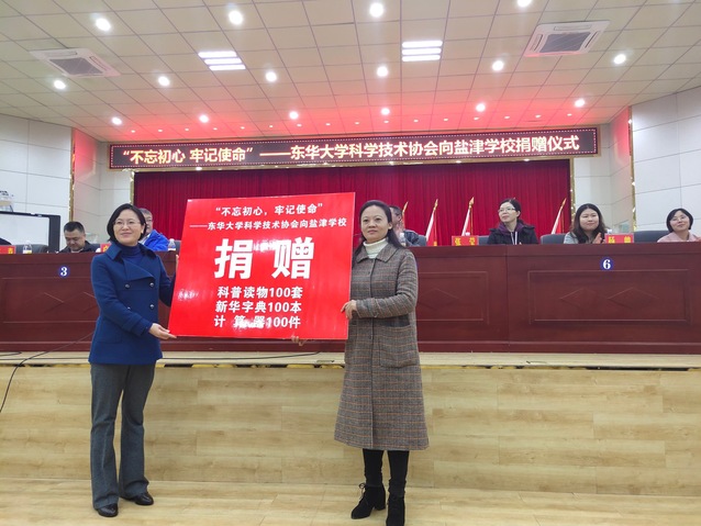 培训前举行了简短的捐赠仪式,谢旭红代表我校向盐津中小学捐赠图书、教具,包括科普读物100套、新华字典100本以及计算器100件,盐津青少年活动中心负责人代表盐津县教体局接受捐赠。