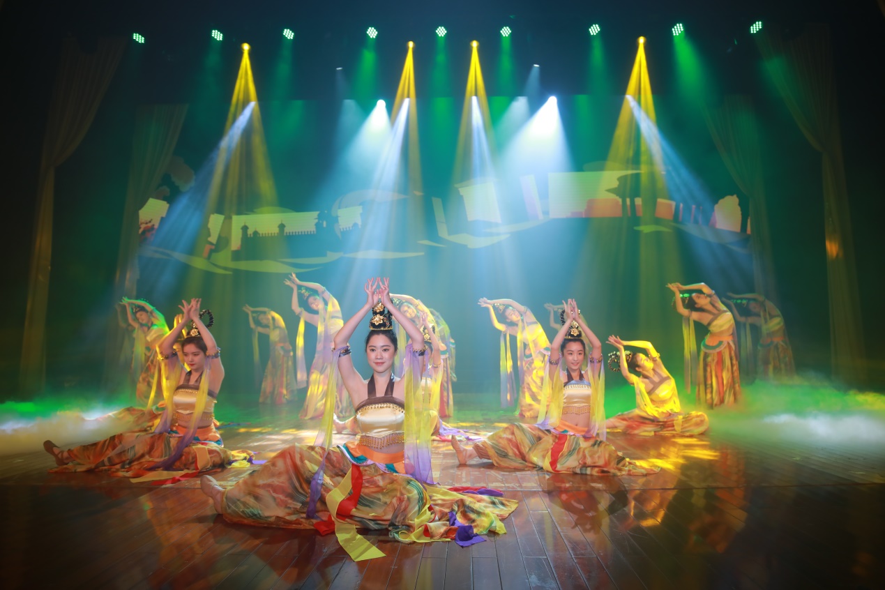 晚会由四个篇章组成。第一篇章《爱我黄河》,来自当代大学生对中华民族“母亲河”——黄河的精神追问与讴歌,在筝鼓合奏“霸王别姬”、师生朗诵“黄河即景”、磅礴合唱“保卫黄河”的精彩演出中渐渐走向恢宏。第二篇章《丝路之路》,女群舞“飞天”、韵味悠长的民乐合奏“敦煌”和西域风情的合唱,将观众带入漫漫丝路的情境之中。第三篇章《海上明月》,老上海的歌曲“串烧”与新上海风貌的“舞蹈剧场”,让观众在新旧时空中徜徉。第四篇章《追梦中国》,师生合唱新时代赞歌,主题朗诵将整场演出推向高潮。演出过程中,现场观众充分融入其中,掌声欢呼声不断,深刻表达了东华师生对祖国的无限热爱和美好祝愿。