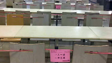在食堂,除了“北欧排队”,“国考吃饭”也是必要素质,在抗“疫”特殊时期,1米线成为学校食堂就餐的标准线。“前后左右间距均为1米,吃出了国考的感觉。”只有保持足够距离才能产生美,将风险降到最低,才能在防疫大考中得高分。两个校区食堂均开放部分窗口,保证供应,并在食堂显著位置提醒大家“错时错峰、限流用餐、自带餐具、打包外带”。同时,学校不间断地对食堂内外、餐具用具进行清洗消毒,让返校返岗的教职工吃得更踏实。