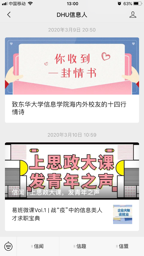 (DHU信息人微信公众号发布十四行情诗和易班网络微课)