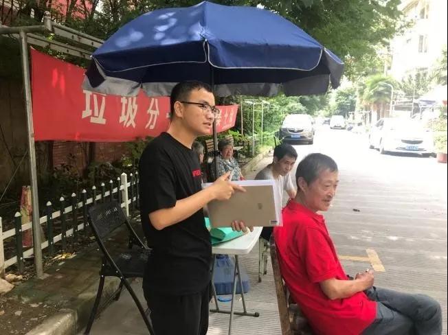 (郭智健在社区调研垃圾分类情况)