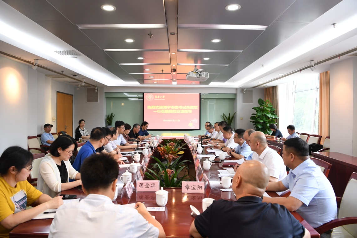 刘承功代表学校对朱建军一行来访表示欢迎。他表示,和海宁市具有学科、产业等方面的契合优势以及良好的产学研合作基础。在长三角一体化发展的大背景下,学校将进一步发挥人才、技术、信息等方面优势,深化双方在各领域的交流合作,更好服务地方经济和社会发展。