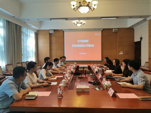 8月19日,长宁区委副书记陈华文一行到我校调研大学生就业创业工作。党委副书记刘淑慧出席调研活动。长宁区人社局、区委组织部、公务员局等相关部门负责人及我校学生就业服务中心、产业联合党总支等相关部门负责人与会。学生就业服务中心主任严军主持会议。