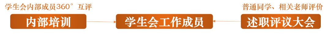 在学生会日常工作中,借助内部培训开展学生会工作成员内部互评,促进学生会组织健康发展。过去的一学年,校学生会工作述职评议大会、校园治理大赛、各学院星级学生会评比工作由学校相关职能部处、学生大众评审参与到评议工作中来,多维度的评价体系成为学生会健康发展的保障和“助推剂”。