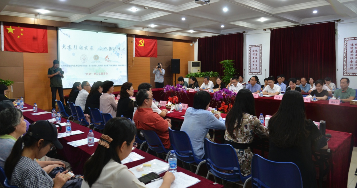 服装与艺术设计学院艺术二党支部书记胡杰明、下沙社区党委副书记严斌、沈庄村党总支书记谈林华作交流发言。双方领导共同为“党建联建暨党员干部教育培训基地”“浦东艺术创作创新基地”揭牌。我校一行还参观了“党建引领 文化结对——2018-2020服院师生作品暨课程成果汇报展”和方孝孺纪念馆、沈庄村村史馆。