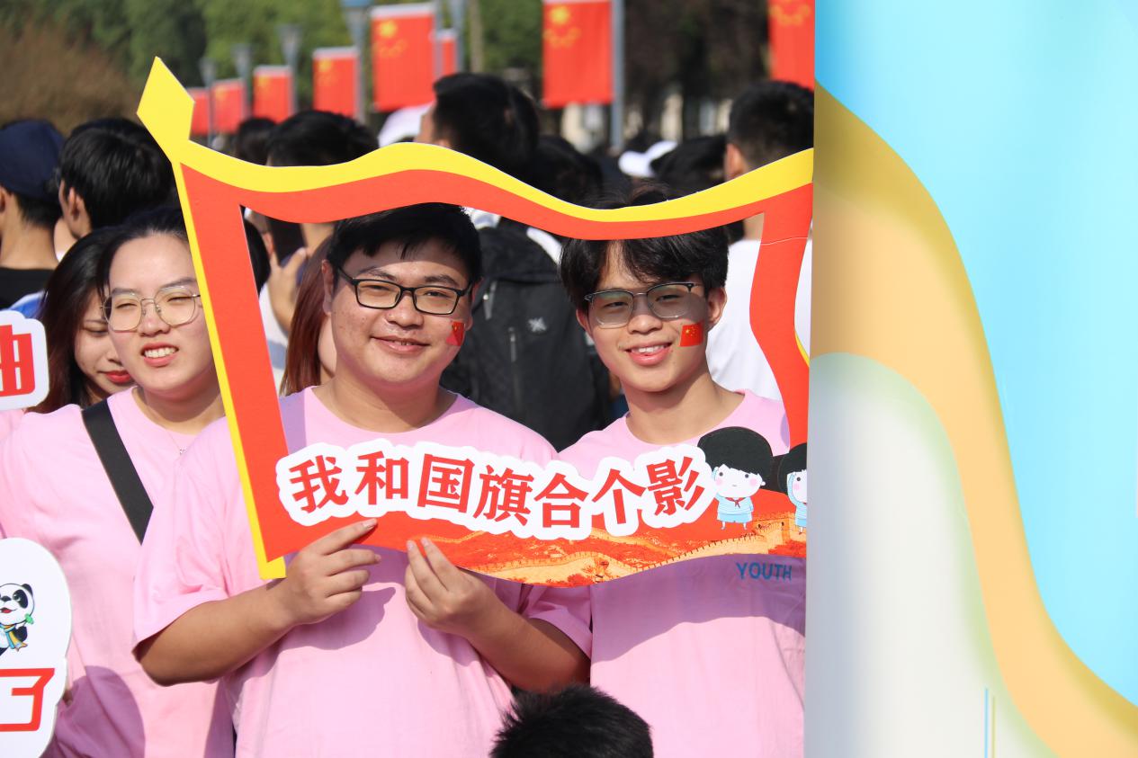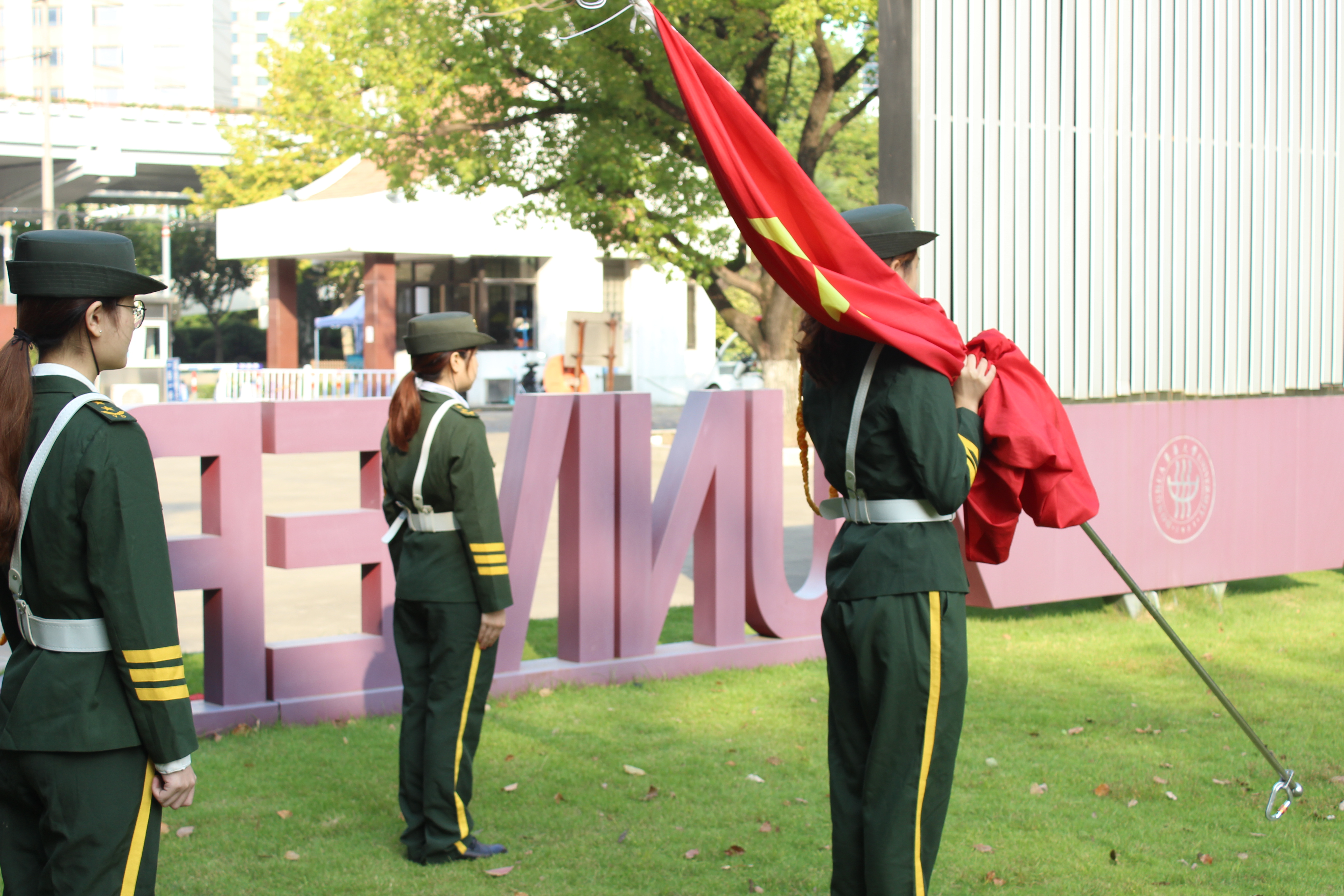 10月1日上午8点,“经纬征程 日月东华”庆祝新中国成立71周年升旗仪式在松江校区和延安路校区国旗广场同步举行,1500余名师生及第三届进博会志愿者参加活动,共同为祖国庆生。