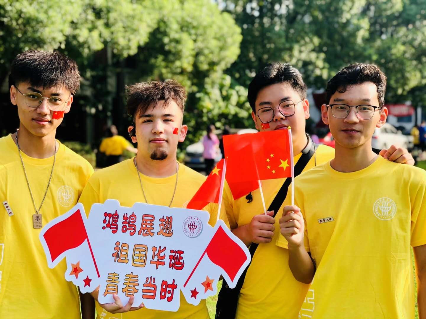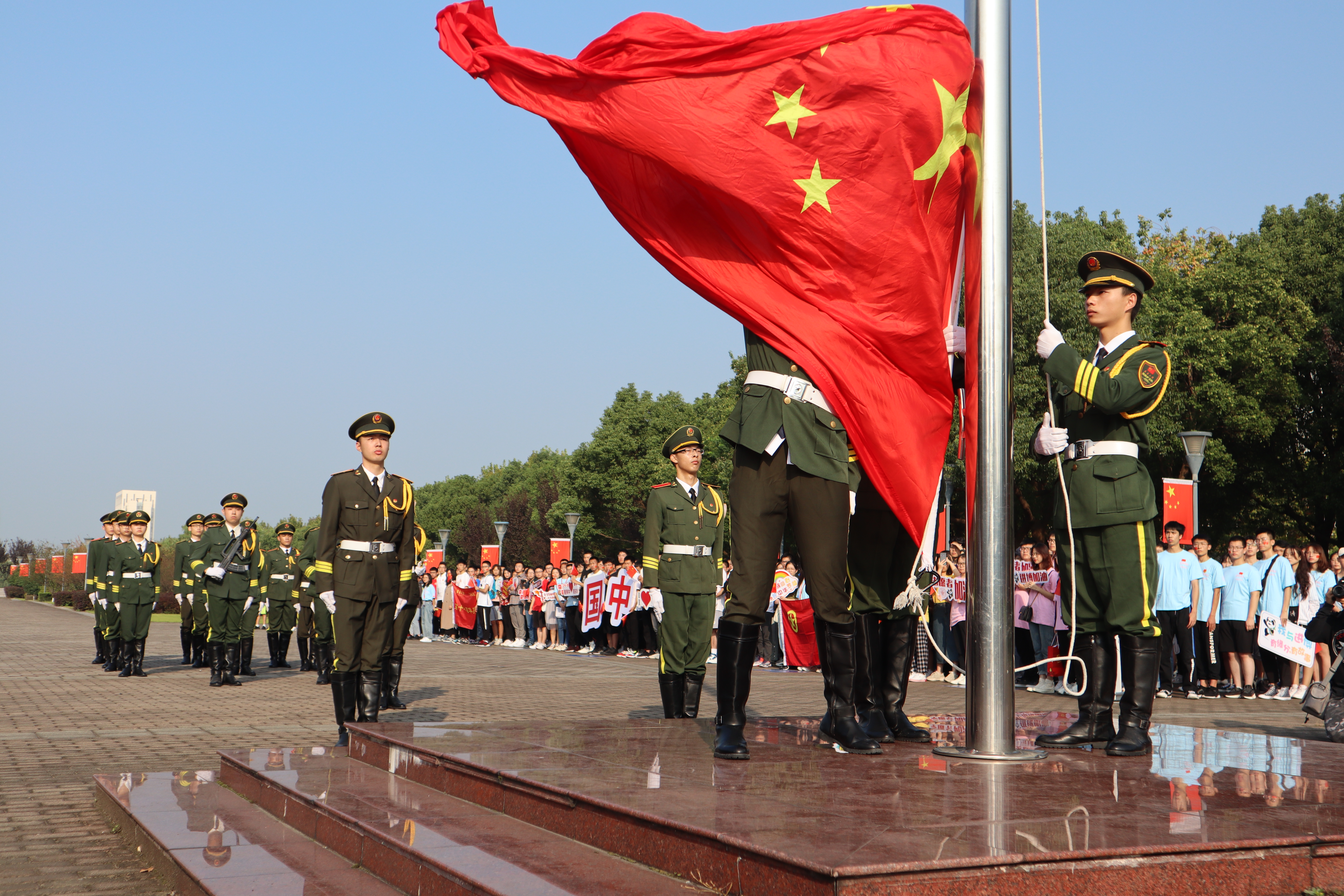 10月1日上午8点,“经纬征程 日月东华”庆祝新中国成立71周年升旗仪式在松江校区和延安路校区国旗广场同步举行,1500余名师生及第三届进博会志愿者参加活动,共同为祖国庆生。