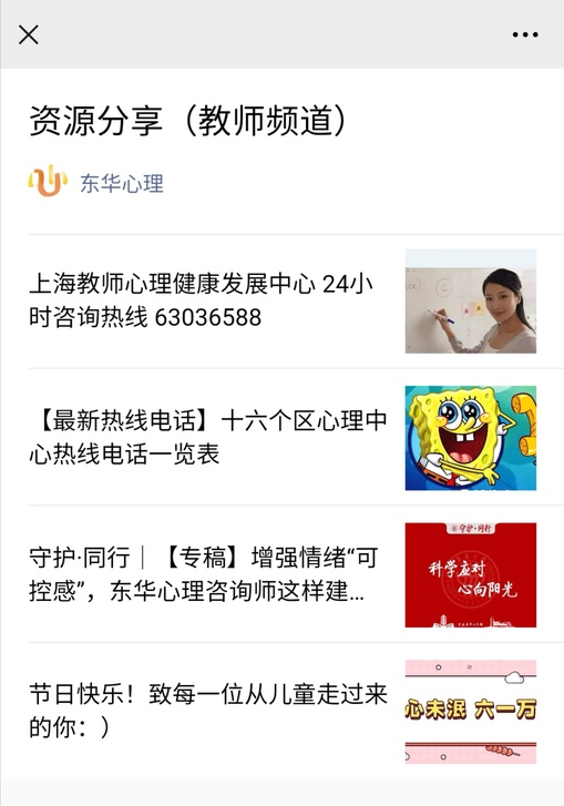3. 关注微信公众号“东华心理”(dhuxinli),进入“教师频道”,点击“树洞”,则可查看进入树洞的方式。
