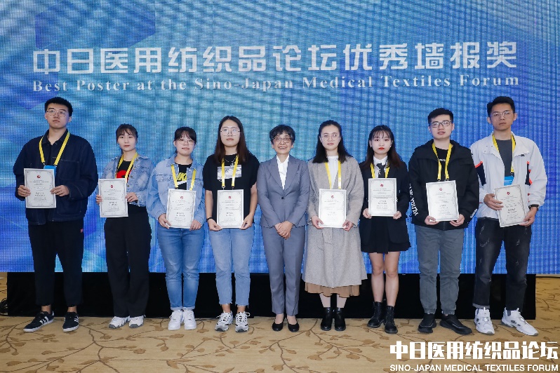 此外我校纺织学院博士生张倩,刘来俊,乔燕莎,于成龙在本次中日医用纺织品论坛中荣获优秀墙报奖。
