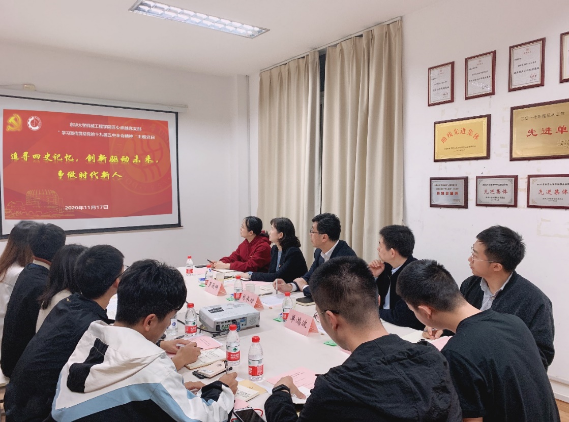 11月17日,党委书记刘承功参加机械工程学院匠心卓越本科生党支部“学习宣传贯彻党的十九届五中全会精神”主题党日活动。学院和相关部门负责人以及支部全体党员参加学习。