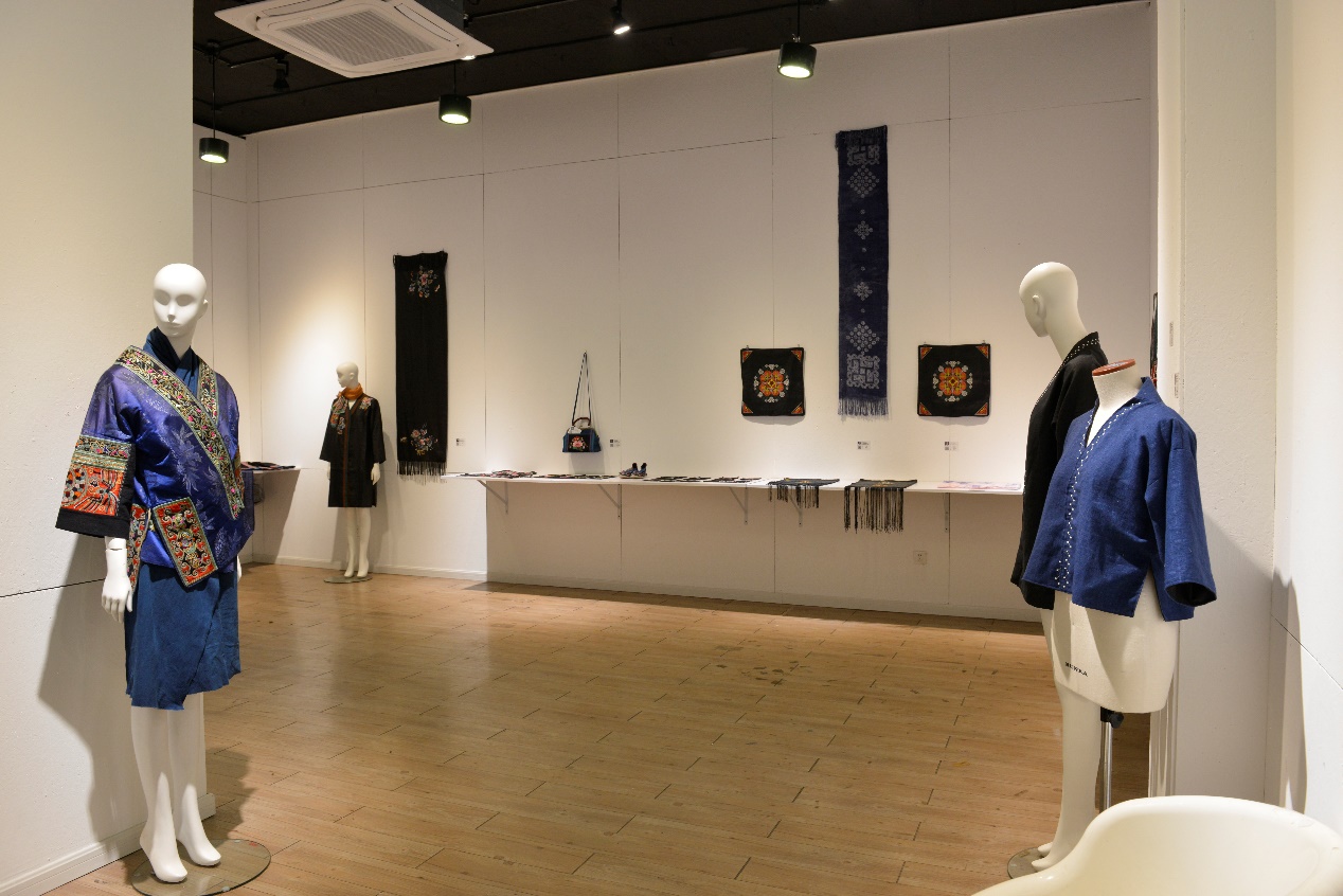 11月19日,时尚‘黔’风·第八期传统刺绣创意设计非遗研修成果静态展在延安路校区逸夫楼一楼开幕。此次静态展展出的展品分为三个部分:贵州传统服饰、学员在贵州时设计的刺绣产品和这次在学习期间设计制作的刺绣产品。展览的宗旨是为表达传统民族文化是设计创新的源泉,非遗保护与传承是历久而弥新的社会实践。展览既是研培成果的展示,也是为了促进在校学生和社会各界朋友与学员之间进行多方位交流而搭建的平台。