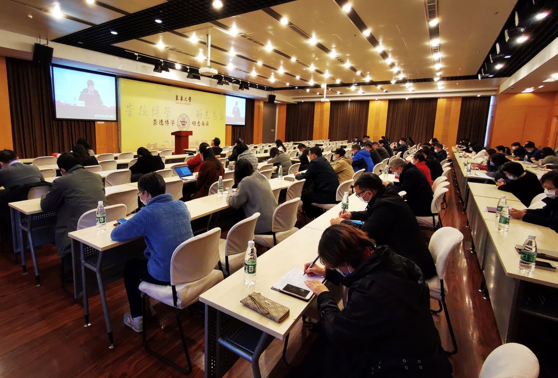 为进一步深化学校“干部能力提升工程”,扎实做好“十三五”收官和“十四五”开局各项工作,加快推进“奋进东华”建设,近日,校长俞建勇在松江校区为学校干部骨干讲授“以习近平新时代中国特色社会主义思想为指导,推动学校高质量发展——科学谋划学校‘十四五’规划”主题党课,延安路校区设视频分会场,党课由党委常委、党委组织部部长、党校常务副校长朱英主持。