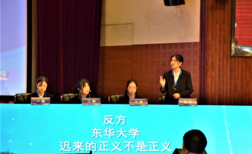 在疫情防控常态化背景下,本次比赛初赛和复赛均在线上进行,以“宽松式管理对大学生(成长)利大于弊/弊大于利”“(当下)中国的法定结婚年龄有必要/没必要降低”为题,我校人文辩论队,在学校学院统筹与专业老师指导下,院内师生一齐努力,立论思路清晰、胸有成竹,充分展示了东华学子的思辩能力和法治精神。