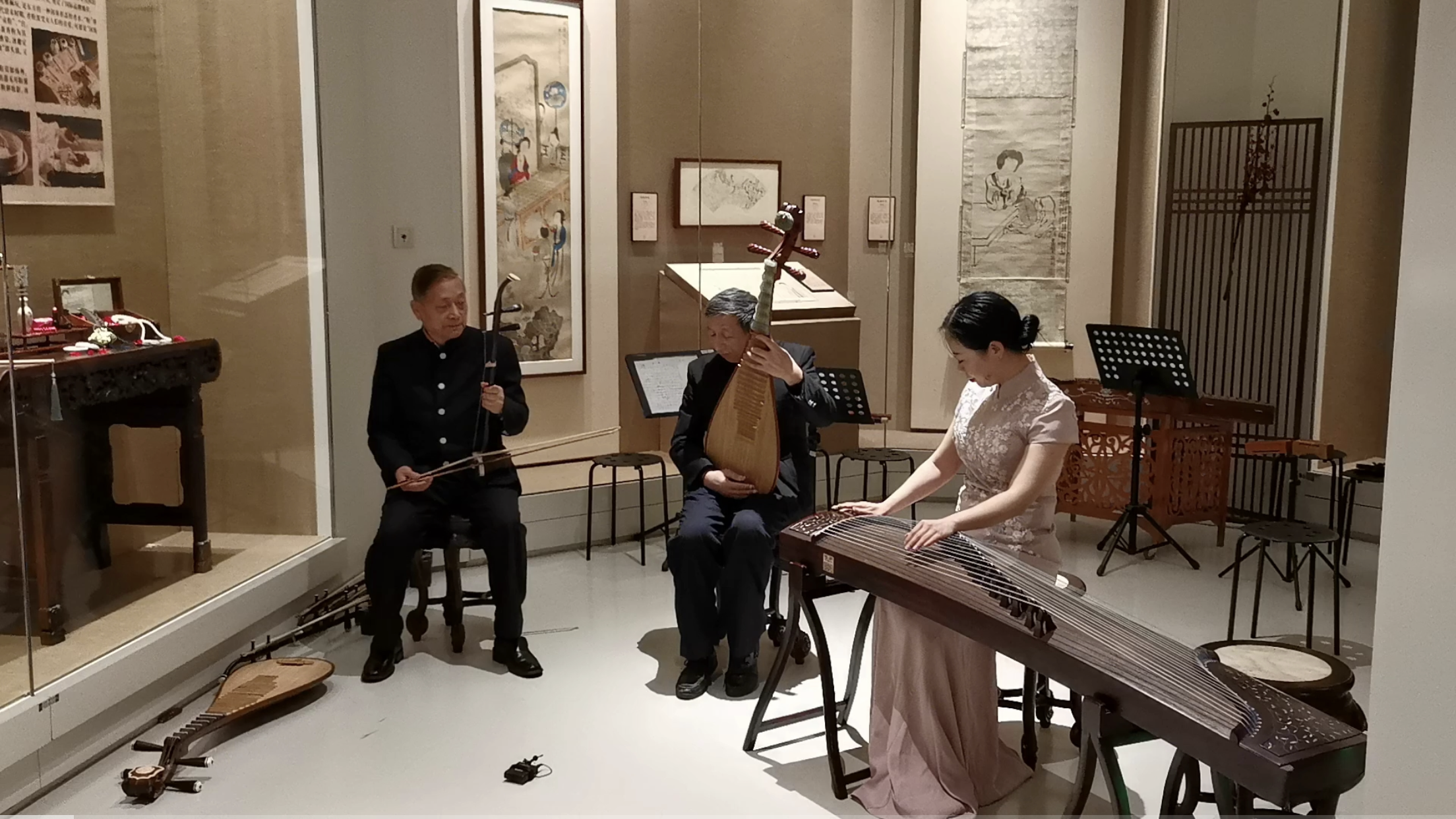 本次音乐会开创性地将音乐舞台融入博物馆,呈现出独特的跨界国风,并将画展中所展现的江南诗意与人文意蕴融入中国传统民乐,在书画大写意的意境中用音乐叙述江南文化,通过极富韵味的画面配合国风乐曲的演奏,化成诗意的水墨长卷,人在画中、景在境中、乐在情中。